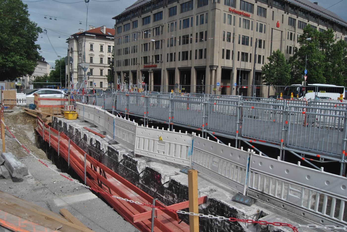 Der Weg zu den Trams ist allerdings gesperrt, weil auch an den Tramgleisen am Sendlinger Tor und zwischen Hauptbahnhof und Stachus den Sommer über gearbeitet wird.