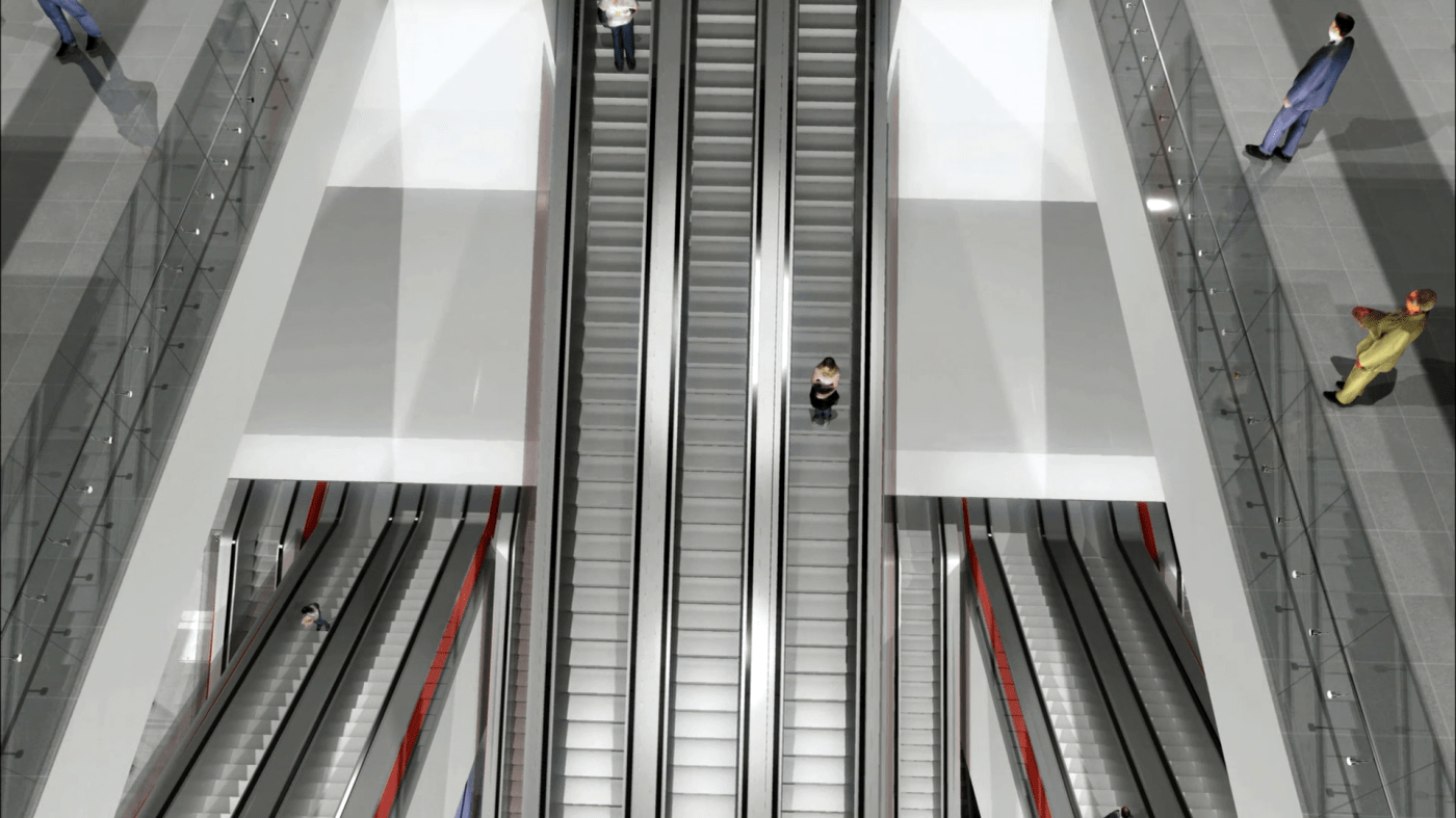 Rolltreppen und Express-Aufzüge bringen die Fahrgäste zu Bahnsteigen und Oberfläche.