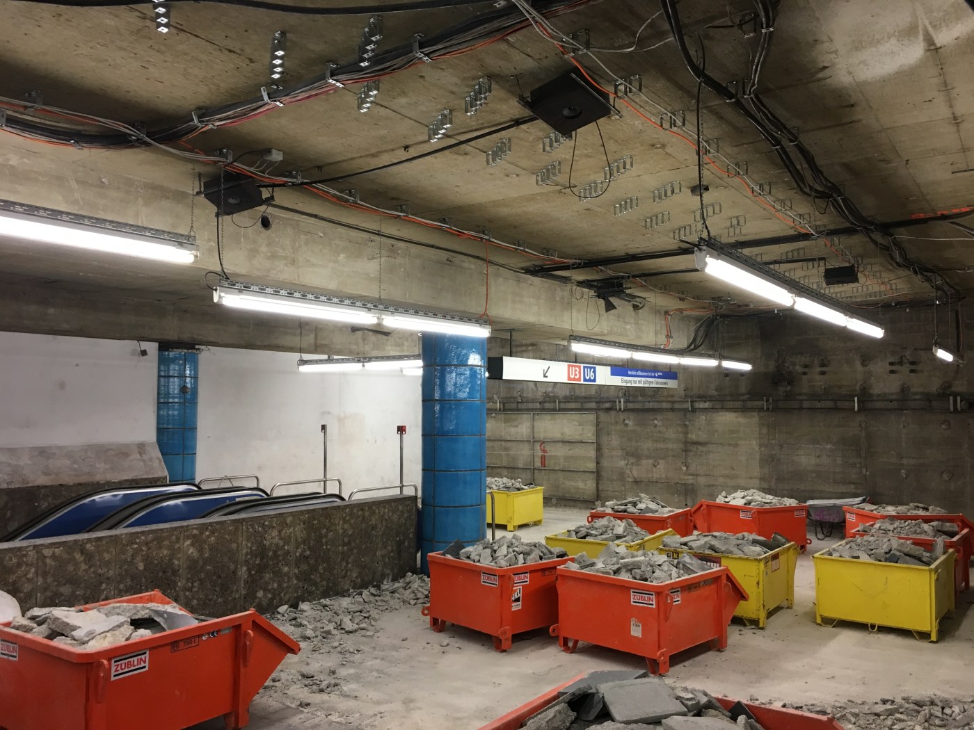 Ein Blick über den Bauzaun auf dem U3/U6-Bahnsteig. Vor allem in der Hauptverkehrszeit fehlen die drei Rolltreppen. Ein Jahr lang werden die Fahrgäste auf diesen Weg verzichten müssen.