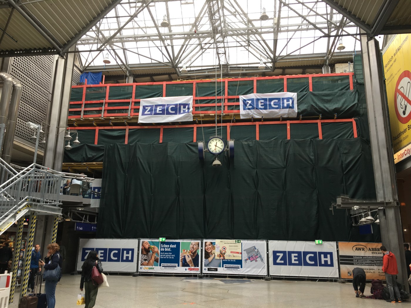 Ein paar aktuelle Bilder vom Wochenende: Die Mauer am Ende der Haupthallte steht. Auf dem Bahnhofsvorplatz wird weiter das Baufeld für den Abriss der Haupthalle vorbereitet.