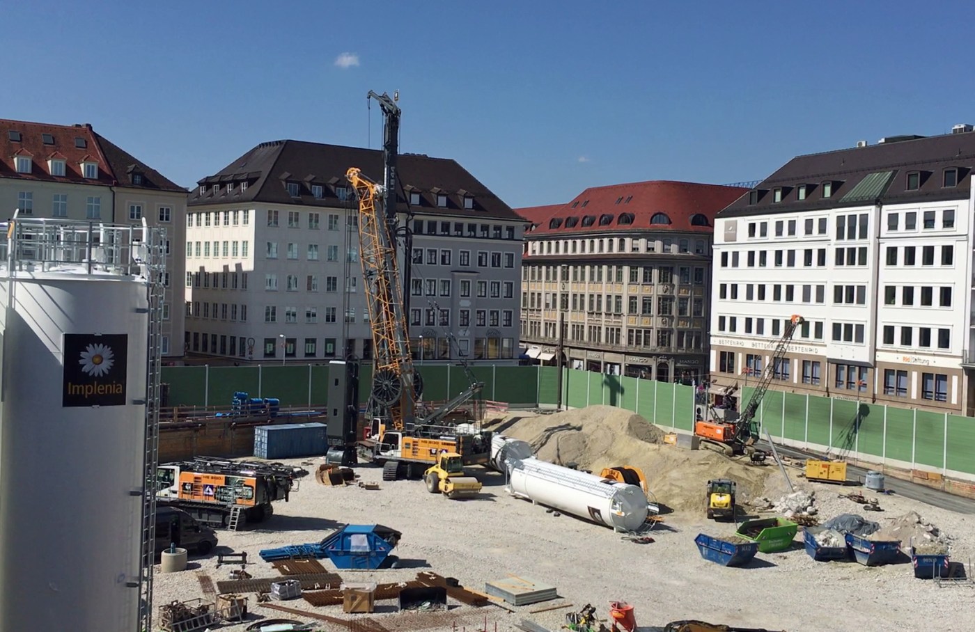 Baugeräte, Lagerstätten und Baumaterial am Marienhof sind nahezu komplett. In der ersten Septemberwoche werden die letzten noch fehlenden Großgeräte angeliefert. Dann kann gebaggert, gefräst und betoniert werden. Fotos und Video stammen vom 31. August 2019.