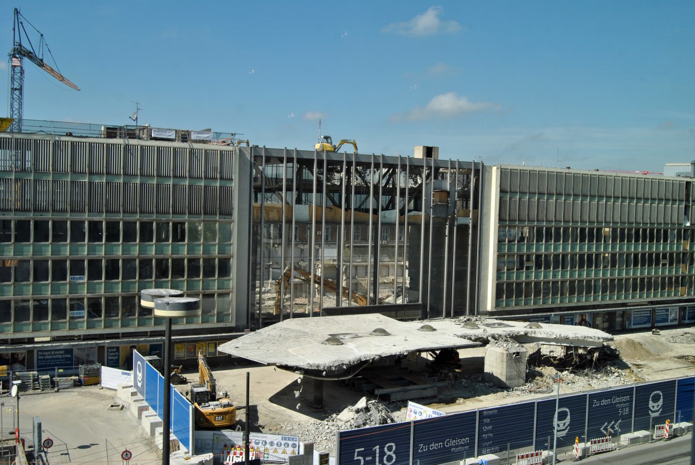 Der Abriss der alten Haupthalle am Bahnhof München hat begonnen. Außerdem wird das vor dem Bahnhof stehende Schwammerldach abgegrissen. Die Geschwindigkeit, in der die Bagger Stück für Stück den Ort zerlegen, an dem noch bis Ende März täglich zehntausende Menschen ein und ausgingen, ist beeindruckend.