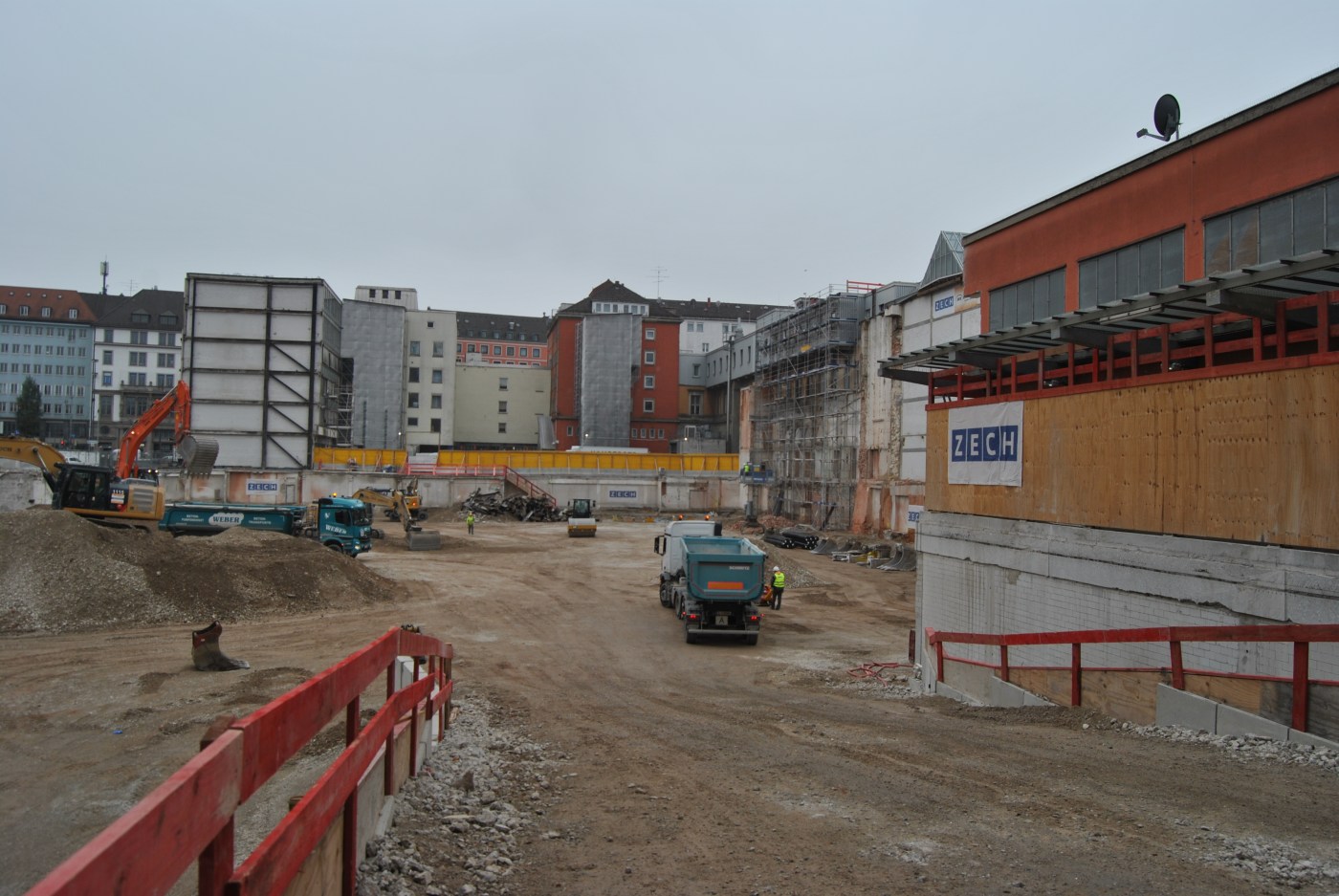 Dort, wo bis vor einigen Wochen die alte Schalterhalle stand, wird jetzt die Baugrube für das 40 Meter in die Tiefe gehende Zugangsbauwerk zur zweiten Stammstrecke errichtet. Damit dies ohne Gefahren über die Bühne gehen kann, sucht der Kampfmittelräumdienst nach Blindgängern aus dem Zweiten Weltkrieg. Außerdem wird ein Brunnen gebohrt, um den Druck des Grundwassers abzusenken.