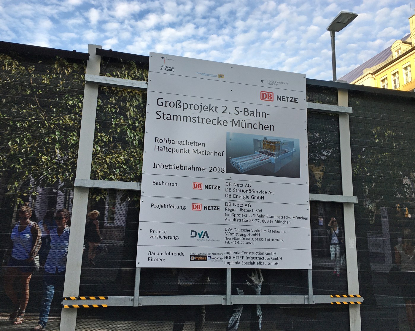 Es tut sich was an der Baustelle Marienhof. Nicht nur das Bauschild mit dem aktuellen Inbetriebnahme-Datum ist neu. Auch hinter dem Bauzaun tut sich was. Ein Foto-Update von Mitte Februar.