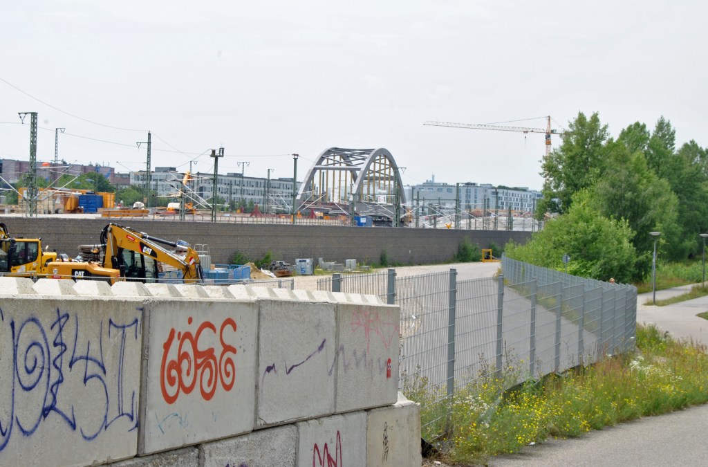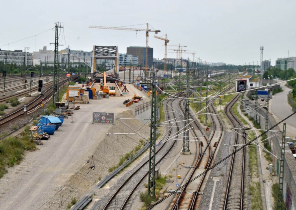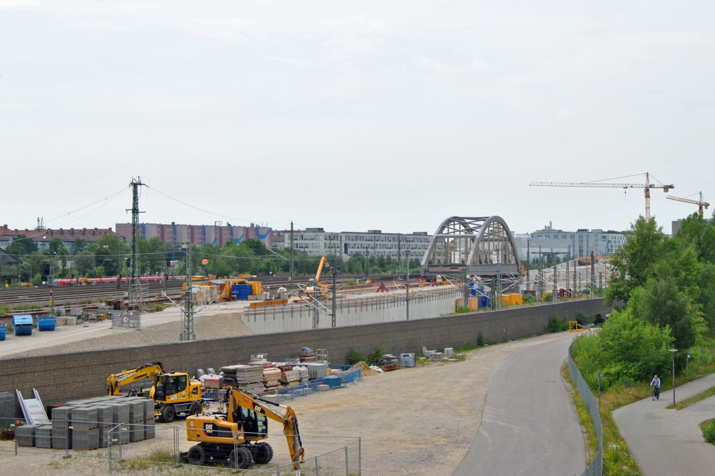 Zwischen Laim und der der S-Bahn-Station Hirschgarten wurde Ende Juli ein großes Puzzle zur Vollendung geführt: Eine Stabbogenbrücke für die zweite Stammstrecke über die bestehenden Gleise des Südrings.