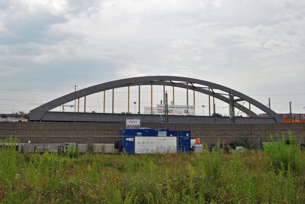 Die Stabbogenbrücke besteht aus rund 80 Fertigteilen. Die Deutsche Bahn montierte sie in rund zehn Monaten vor Ort, neben den Gleisen.